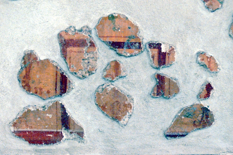 Enns ( Oberösterreich ). Museum Lauriacum: Fragmente von Wandmalerei ( 2./3. Jhdt.) aus der Zivilstadt ( Stadelgasse ).