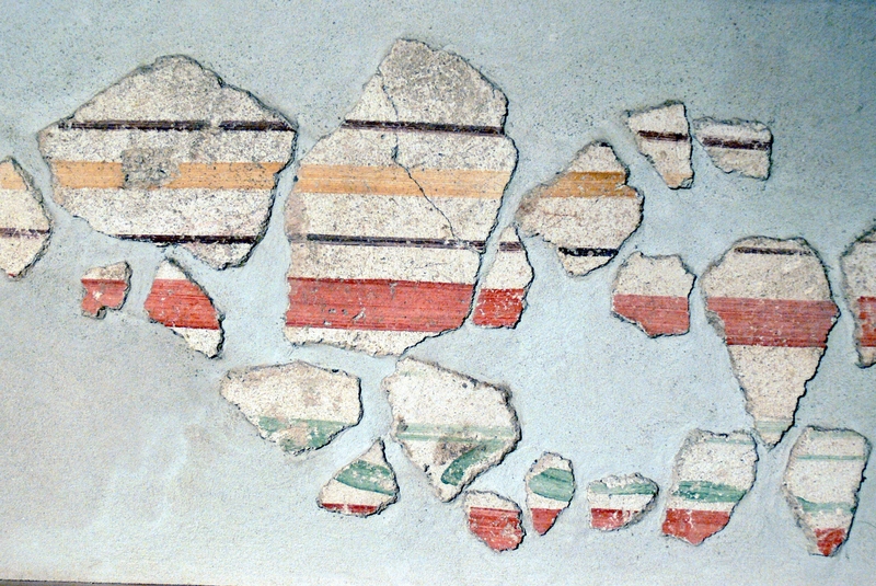 Enns ( Oberösterreich ). Museum Lauriacum: Fragmente von Wandmalerei ( 3. Jhdt.) aus der Zivilstadt ( Stadelgasse ).