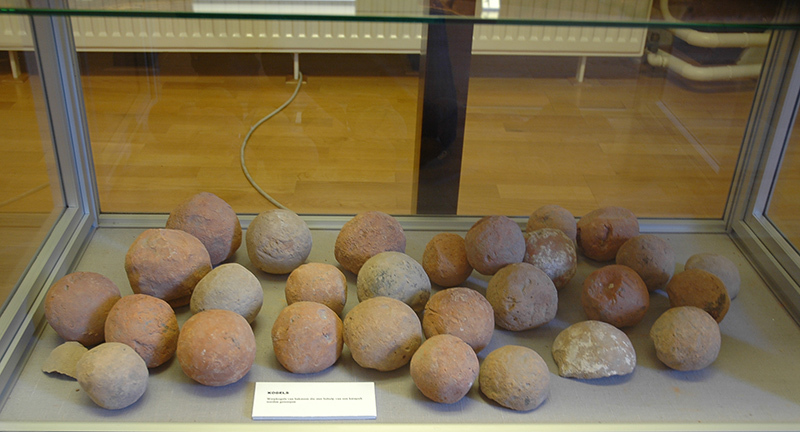 Stenen kogels die met een katapult werden afgeschoten.