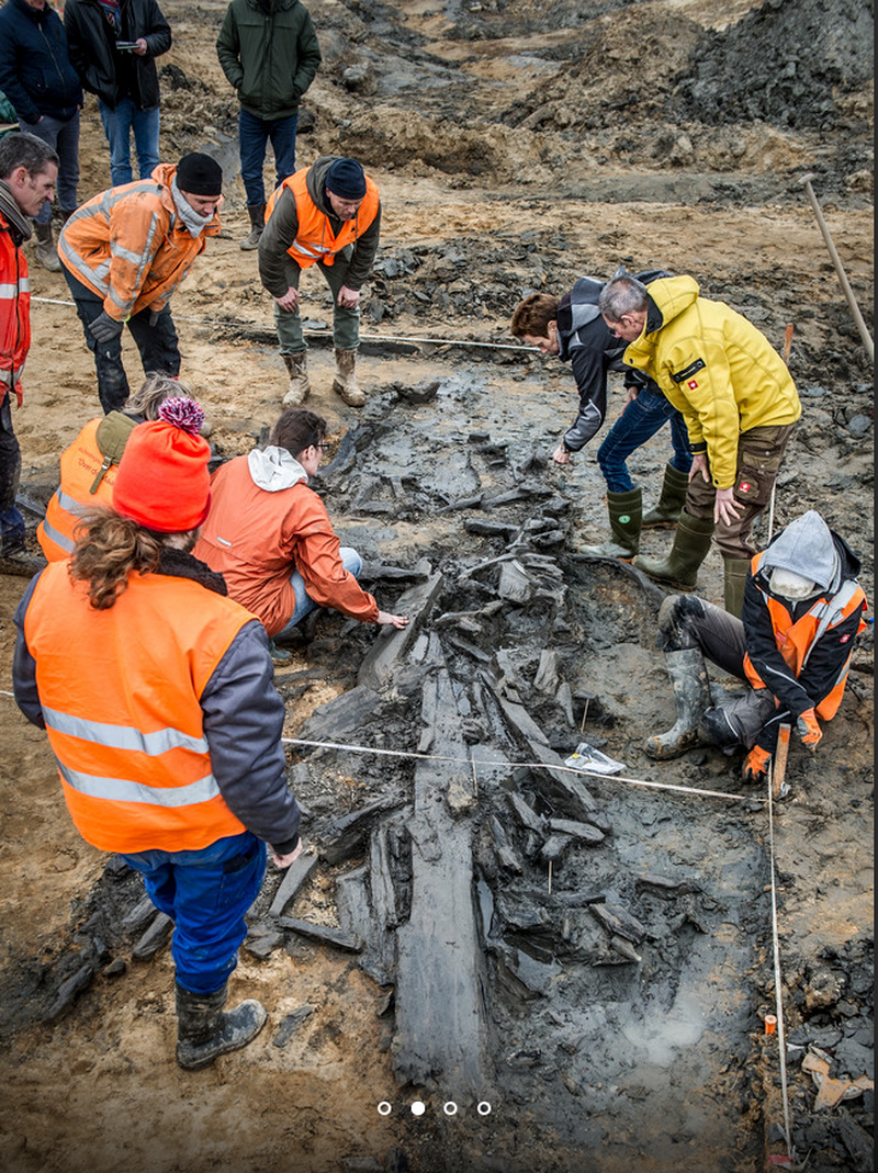 Opgraving van het verspoelde Romeinse scheepswrak, waarin Romeins glas en een medisch werktuig werden gevonden.