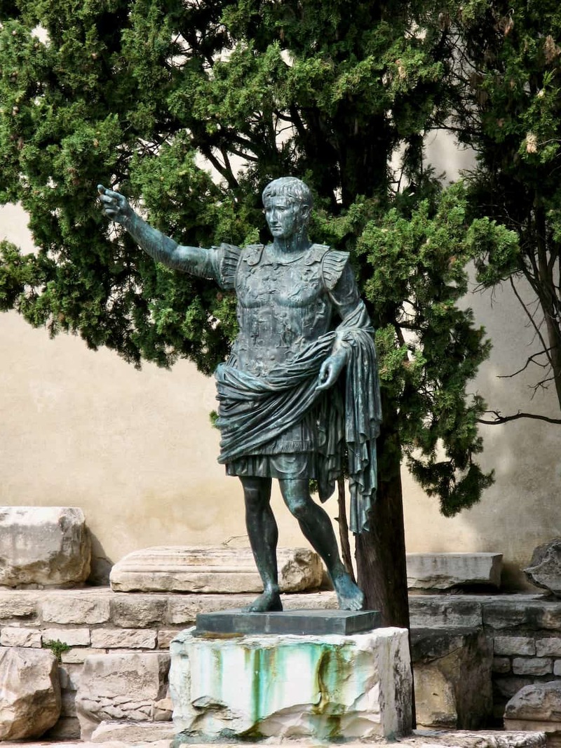 Statue of the roman emperor Augustus in the archaeological area of Porta Augusta. Photo 2007.