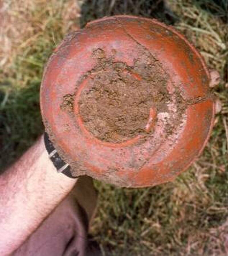 Terra sigilata schaal gevonden door de Historische Kring Kesteren en Omstreken aan de Retsezijstraat te Zoelen.