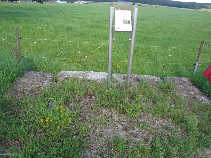 At Wp 12/101 in Ellwangen near Kastellstraße in Pfahlheim, Baden-Württemberg. The tower was strategically positioned in the Halheimer Heide, a heathland area, to monitor and secure the Limes. In 1819, an exploratory excavation referred to as a "Probeloch" (test pit) was conducted at the site, which provided early evidence of the watchtower's presence. This excavation, documented in German sources, helped establish the site’s Roman origin. However, by 1972, German archaeologist Dietwulf Baatz noted that no visible traces of the watchtower remained during his investigations, indicating that the site had likely been disturbed or eroded over time as agricultural use and natural degradation had obscured physical remains. Nearby is a Hallstatt-period burial mound from the early Iron Age that had been investigated during the 1819 excavation, which confirmed its prehistoric origin through artefacts and structural analysis.