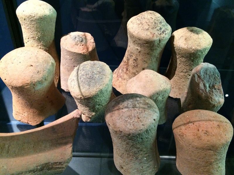 Amphora bottoms which had been recycled as weaving weights. Displayed in the museum