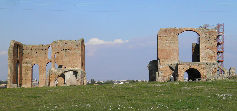 The caldarium (right) and the frigidarium (left).