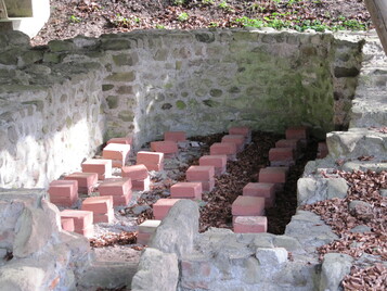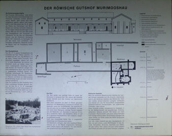 Grundmauern des Badegebäudes eines Gutshofes unter Schutzdach