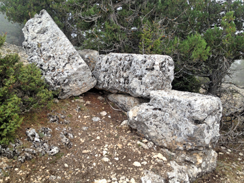 There are very few left from this castle. East, South and West of the castle are very deep canyons and there are some wall leftovers in the north. On the southern ede there are several cisterns, rock-cut houses and stairs. The elevation is around 1400 meters here and seems that very few left due to daily and seasonal temperature differences. There is one sarcophagus that was destroyed by treasure hunters. The castle may date back to Hellenistic period. There are some carved stairs in the rock on the eastern cliffs.