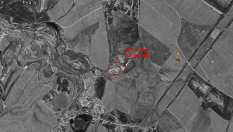 Probable settlement. Located with satellite imagery.