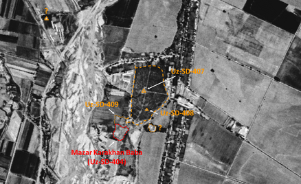 Small mound (0,2 ha), with pre-modern ceramics finds. Visible on Corona imagery (1970), since destroyed by modern urbanisation. Probabely part of the larger Uz-SD-407 settlement.