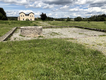 Markierung der Fundamente und konservierter Rundbrunnen